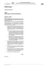 4 2010 – Mitteilungen, Telekommunikation, Teil A, Mitteilungen der Bundesnetzagentur – 565