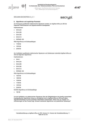Algorithmen [Hashfunktion, Signaturverfahren] sind gemäß den Angaben der Bundesnetzagentur
