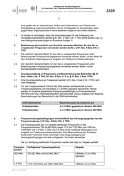 mit der Vergabe der Frequenzen in den Frequenzbereichen 1,8 GHz, 2 GHz und 2,6 GHz
