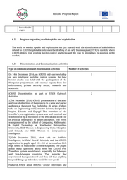 Periodic Progress Report 1. Progress of Work Plan in the period 1.1 General progress iCROSS project started on September 1, 2016. Six (6) WPs have started this month. Namely, WP1: Ethics requirements, WP2: Relevant EU Legislation, Requirements Analysis and Reference Architecture, WP7: Dissemination, Exploitation, Communication and WP8: Project Management and Quality Assurance. The main objectives of this first period were the extraction and analysis of user requirements (D2.1) the preparation and completion of the iCROSS Web Portal (D7.1) and the iCROSS flyer (D7.2), the submission of the Quality Management Plan (D8.1) and the Appointment of an External Ethical Advisor (D1.3). All Deliverables were submitted on time and some even a few months earlier (e.g. D7.1, D7.2). In Month 3 (November 2016) of the project, WP3 and WP4 have started as well. WP3 focuses on the development and technical test of all technological components and subsystems while WP4 focuses on the development of the iCROSS software platform and related interfaces. Furthermore, several communication/ dissemination activities were performed, for example, the preparation of the web-site and project flyer as already mentioned, the creation of a LinkedIn Group and a Twitter account, the participation in a number of workshops and events, publications and a featured article in the EU Horizon Magazine. 1.2 Progress on all work packages against initial objectives WP 1: Ethics requirements. The main objective of this work package is to ensure compliance with the 'ethics requirements'. As border checks naturally require the processing of personal data, the technical developments of iCROSS can potentially cause complex and significant ethics issues. In order to ensure that the project follows ethic principles (Code of Ethics), properly address ethics issues and minimize the risk for individuals, the appointment of an independent Ethics Advisor was agreed by all consortium partners. The selected Ethics Advisor (EA) has the appropriate expertise in data protection, surveillance and profiling as stipulated in D1.3. The EA has been introduced to the project and is following all activities; currently being engaged to the architecture design (D2.2), which will be finally reviewed in accordance to any ethics constraints. WP 2: Relevant EU Legislation, Requirements Analysis and Reference Architecture. This workpackage was very active during this period. Soon after the kick-off meeting the relevant work progressed quickly and the focus of activities concentrated on the extraction of the user requirements and the delivery of D2.1 – “Requirements Analysis Report”. More specifically, D2.1 activities that were carried out in the framework of this work package included the following main aspects: a) description and analysis of concepts of border management (historical context, current practice and European perspective on Integrated Border Management) along with reviews of individual practices at the Border Control Points of the iCROSS end users: Hungarian National Police, the Latvian Border Guard and TRAINOSE (Greek Rail Border Crossing Points), b) a thorough review of the State of the Art of all interdisciplinary technologies that will be employed within the iCROSS overall system regarding: existing border control platforms, document authenticity analytics tools, automatic deception detection systems, biometrics, hidden human detection tools, analytics, wireless communication networks. Particular attention was also given to relevant surveys and recent research in the field, c) a specific methodology was adopted for the requirements capture and analysis to complement the state of the art review with the user perspective. This methodology was combined with specific user centric questionnaires for the Border Guards and a relevant site survey with a practical “End User’s Workshop” which was held at the Border Control Point In parallel, a Traveler’s survey took place for adequate time through an on-line (web) questionnaire accompanied with printed traveler’s awareness flyers which were disseminated at each candidate