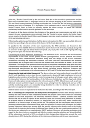 Periodic Progress Report pilot site / Border Control Point by the end users. Both the on-line traveler’s questionnaire and the flyers were translated into 11 languages based on the relevant mapping of the citizens nationalities (EU and Third Country Nationals) crossing each border line. To this end, the 2nd project’s consortium meeting was held in Budapest, 9-11 November 2016 combined with a visit to the Border Control Point, in order to officially initiate the above surveys, to assess the relevant preliminary feedback and to provide guidance for the next steps. d) based on all the above activities, the elicitation of the general user requirements was held; to this respect the user requirements were extracted from the Traveler’s survey results, the Border Guard survey results, the Border Guard Officers and Managers interview results combined with the expertise of the participating end users. Following the gathering and elicitation of all the above information the D2.1 was successfully delivered in due time according to the provisions of the Annex I of the Grant Agreement. In parallel to the extraction of the user requirements, the WP2 activities are focused on the development of the iCROSS Reference Architecture (in the framework of Task 2.2 / D2.2) along with an overview of the legal and ethical framework (Task 2.3 / D2.3). The work is still ongoing following the given time plan and includes the following: Concerning the iCROSS Reference Architecture: The definition of the functional and non-functional requirements of the main iCROSS system sections (preregistration, iCROSS platform and Border Control) and their communication interfaces along with the design of the iCROSS Reference Architecture including the envisioned scenarios, use cases, end-user functionalities and technical requirements are in progress and in line with the related work plan included in Annex I of the Grant Agreement. The design of the system architecture and its subsystem components along with their data communication mechanism is in progress as well. Based on the system analysis both functional and non-functional specifications are also being elicited, including system hardware, firmware and software also in combination to the relevant aspects of WP3 and WP4 who have been initiated as well. Concerning the legal and ethical framework: The above actions are being made almost in parallel with the EU-wide legislation review, since the user requirements -along with legal compliance, in terms of legislation and procedures in land border control crossings (esp. in Schengen areas)- play a major role. An interaction between the functionalities of the Reference Architecture and the legal and ethical framework takes place, incorporating also the relevant aspects of WP1. Ethical issues such as privacy, informed consent and their impact on security issues, arising from the deployment and use of the activity monitoring system are constantly being identified in order to develop remedies and to guarantee an appropriate implementation. Both the above issues are expected to be finalized in due time, according to the WP2 time plan. WP 3: Technological Components and Subsystems Development. Partners have already started to identify the risks related to each component/module and prepare Gantt charts which are constantly updated as the work progresses. The necessary hardware sensors – cameras, scanners and other devices that will be used to capture all the necessary input are currently being identified. In parallel, an in-depth analysis of biometric sensors (i.e. fingerprints, face, iris and vein), either commercially available or in research stage, is being carried out. The analysis will also encompass state-of-the-art document authentication instruments along with the inclusion of sensors and techniques for hidden humans’ detection (taking into account both the specific relevant tools already used at the Border Control and the insertion and testing of additional ones, based on the user requirements analysis). All the devices are subjected to a comprehensive SWOT analysis. Moreover, all spoofing techniques with regard to the above tools are examined and effective counter-spoofing solutions are being identified. All the subsystems involved in WP3 are already in their design phase taking into account the work already done in WP2 during the definition of the reference architecture and the user requirements.