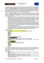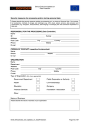 Ethical Code and Updates on __Date | Version Remarks 08/10/2018 |1.0 | Final version Document Authors Enity| 00 Autor | EA | DH 3 | Disclosure Statement: The information contained ın this document is the property of <PROJECT CONSORTIUM> and it shall not be reproduced, disclosed, modified or communicated to any third parties without the prior written consent of the abovementioned entities. 740593-ROBORDER-D8.6_EthicalCode_and_Updates_on_DataProtection Page 50 of 87