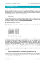 HORIZON 2020 – 101021851 – NESTOR D8.9 – GEN-Requirement No.9 4 WORK PROGRESS In order to effectively perform its role, the EtAB had regular meetings, participated in all project’s meetings and other research activities (workshops, trainings, pilot demonstrations), provided guidance to the NESTOR Consortium in the form of Ethics Guidelines, reviewed the deliverables raising ethical and/or legal concerns via an Ethics Review Table and co-drafted the ethics deliverables and other necessary documentation. • EtAB Meetings Considering its important role, the EtAB met regularly (every 3 months or similar), in order to discuss the ethical issues that were raised and the next steps that had to be followed. During the lifetime of the NESTOR project, six (6) ordinary meetings were held. No extraordinary meetings were held. The six (6) ordinary meetings that were held are the following, also reported in the relevant project’s reports: - 1st EtAB meeting : 24/11/2021 - 2nd EtAB meeting : 24/03/2022 - 3rd EtAB meeting : 31/05/2022 - 4th EtAB meeting : 20/09/2022 - 5th EtAB meeting : 27/01/2023 - 6th EtAB meeting : 22/03/2023 • Deliverable Ethics Review Procedure The WP8 deliverables, as analysed above, were drafted by KEMEA and reviewed by the other two EtAB members prior to submission. The deliverables of the other WPs were also reviewed by the EtAB prior to submission through the Ethics Review Form/Table that was prepared by the EtAB and was attached to all project’s deliverables. According to this process, each deliverable author had to respond to the questions included in the Ethics Review Form/Table prior to the submission of their deliverable. In case of at least one affirmative response, the deliverable was sent for ethics review and the EtAB members made comments and proposed modifications if needed. In addition, the EtAB contributed to the two deliverables of T1.5 “Ethics and societal issues management”, i.e., D1.5 “Ethics and societal issues management initial report and D1.6 “Ethics and societal issues management final report” that were drafted by KEMEA. • Human Participation in Research Activities and Protection of Personal Data The recruitment of human participants including both recruitment and exclusion criteria, the procedures followed within pilot demonstrations, workshops, and other research activities were subject to the approval by the EtAB. ©NESTOR Consortium Page 18 of 28
