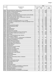 Anlage 3 2014 Schlüssel Kurzbezeichnung erf. Fälle aufgekl. Aq Häufig- Schlüssel insges. Fälle in % keitszahl 674012 Sachbeschädigung durch Feuer (ohne 674312) 15 8 53,3 23 674019 Sonstige Sachbeschäd. (ohne 674119, 674319) 245 104 42,4 382 674020 Gemeinschädl. Sachb. (ohne 674320) 8 3 37,5 12 674021 Gemeinschädl. Sachb. durch Graffiti (ohne 674321) 674022 Gemeinschädl. Sachb. durch Feuer (ohne 674322) 3 1 33,3 5 674029 Sonstige gemeinschädl. Sachb. (ohne 674329) 5 2 40,0 8 674100 Sachbeschädigung an Kfz 118 27 22,9 184 674111 Sachbeschädigung durch Graffiti an Kfz 8 12 674119 Sonstige Sachbeschädigung an Kfz 110 27 24,5 171 674200 Datenveränderung, Computersabotage 7 3 42,9 11 674210 Datenveränderung 5 3 60,0 8 674220 Computersabotage 2 3 674300 Sonstige Sachb. auf Straßen, Wegen oder Plätzen 142 39 27,5 221 674310 Sonst. Sachb. auf Straßen/Wegen/Plätzen gemäß § 303 StGB 136 38 27,9 212 674311 Sonst. Sachb. durch Graffiti auf Straßen/Wegen/Plätzen 48 9 18,8 75 674312 Sonst. Sachb. durch Feuer auf Straßen/Wegen/Plätzen 1 1 100,0 2 674319 Sonstige Sachb. auf Straßen/Wegen/Plätzen 87 28 32,2 136 674320 Gemeinschädl. Sachb. auf Straßen/Wegen/Plätzen 6 1 16,7 9 674321 Gemeinschädl. Sachb. durch Graffiti auf Straßen/Wegen/Plätzen 1 2 674322 Gemeinschädl. Sachb. durch Feuer auf Straßen/Wegen/Plätzen 674329 Sonstige gemeinschädl. Sachb. auf Straßen/Wegen/Plätzen 5 1 20,0 8 674500 Zerstörung wichtiger Arbeitsmittel 674519 Sonstige Zerstörung wichtiger Arbeitsmittel 675000 Sprengstoff- und Strahlungsverbrechen 1 1 100,0 2 675200 Herbeiführen einer Sprengstoffexplosion 1 1 100,0 2 676000 Straftaten gg. die Umwelt 12 8 66,7 19 676010 Bodenverunreinigung 1 1 100,0 2 676011 Bodenverunreinigung 324a StGB 1 1 100,0 2 676012 Bodenverunreinigung - besonders schwerer Fall 676100 Gewässerverunreinigung 4 4 100,0 6 676101 Gewässerverunreinigung § 324 StGB 4 4 100,0 6 676200 Luftverunreinigung 676201 Luftverunreinigung § 325 StGB 676300 Verurs. v. Lärm, Erschütterungen und nichtionisierenden Strahlen 1 1 100,0 2 676301 Verurs. von Lärm, Erschütterungen und nichtionisierenden Strahlen § 325a StGB 1 1 100,0 2 676400 Unerlaubter Umgang mit gefährlichen Abfällen 4 1 25,0 6 676410 Unerl. Umgang mit Abfällen 4 1 25,0 6 676411 Unerl. Umgang mit Abfällen § 326 Abs. 1 4 1 25,0 6 676500 Unerlaubtes Betreiben von Anlagen 1 1 100,0 2 676520 Unerl. Betreiben von Anlagen 1 1 100,0 2 676521 Unerl. Betreiben von Anlagen § 327 Abs. 2 1 1 100,0 2 676800 Abfallein- / -aus- und -durchfuhr gemäß § 326 Abs. 2 StGB 1 2 676810 Ungeneh. Einfuhr von Abfällen § 326 Abs. 2 StGB 1 2 676811 Ungeneh. Einfuhr von Abfällen 1 2 678000 Ausspähen von Daten 8 1 12,5 12 678010 Ausspähen von Daten gemäß § 202a StGB 8 1 12,5 12 700000 Strafrechtliche Nebengesetze 188 174 92,6 293 710000 ST gg. strafrechtl. Nebengesetze auf dem Wirtschaftssektor 26 23 88,5 41 712000 Straftaten nach AktG, GenG, GmbHG, HGB, RechnungslegungsG, UmwandlungsG, InsO 11 11 100,0 17 712200 Insolvenzverschleppung § 15a InsO 11 11 100,0 17 715000 ST i.Z.m. Urheberrechtsbestimmungen 10 7 70,0 16 715010 Markengesetz 1 1 100,0 2 715040 Kunsturheberrechtsgesetz 4 3 75,0 6 715050 UHG -sonstige Verstöße- (ohne Schl. 715100 u. 725200) 4 2 50,0 6