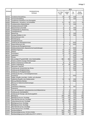 Anlage 3 2014 Schlüssel Kurzbezeichnung erf. Fälle aufgekl. Aq Häufig- Schlüssel insges. Fälle in % keitszahl 410*00 BSD insg. in/aus Dienst-, Büro-, Fabrikations-, Werkstatt- und Lagerräumen 237 95 40,1 369 410000 Schwerer Diebstahl - in/aus Dienst-/Büroräumen - Sonstiger 229 93 40,6 357 410010 BSD - in/aus Dienst-/Büroräumen - Sonstiger 229 93 40,6 357 410100 Schwerer Diebstahl - in/aus Dienst-/Büroräumen - von Kraftwagen 4 2 50,0 6 410110 BSD - in/aus Dienst-/Büroräumen - v. Kraftw. 4 2 50,0 6 410200 Schwerer Diebstahl - in/aus Dienst-/Büroräumen - von Moped/Krad 410210 BSD - in/aus Dienst-/Büroräumen - v. Moped/Krad 410300 Schwerer Diebstahl - in/aus Dienst-/Büroräumen - von Fahrrad 2 3 410310 BSD - in/aus Dienst-/Büroräumen - v. Fahrrad 2 3 410500 Schwerer Diebstahl - in/aus Dienst-/Büroräumen - von unbaren ZM 1 2 410510 BSD - in/aus Dienst-/Büroräumen - v. unbaren ZM 1 2 410700 Schwerer Diebstahl - in/aus Dienst-/Büroräumen - von/aus Automaten 1 2 410710 BSD - in/aus Dienst-/Büroräumen - von/aus Automaten 1 2 415*00 BSD insg. in/aus Gaststätten, Kantinen, Hotels und Pensionen 34 5 14,7 53 415000 Schwerer Diebstahl - in/aus Gaststätten/Hotels - Sonstiger 33 4 12,1 51 415010 BSD - in/aus Gaststätten/Hotels - Sonstiger 31 4 12,9 48 415020 SDS - in/aus Gaststätten/Hotels - Sonstiger 2 3 415500 Schwerer Diebstahl - in/aus Gaststätten/Hotels - v. unbaren ZM 1 1 100,0 2 415510 BSD - in/aus Gaststätten/Hotels - v. unbaren ZM 1 1 100,0 2 415700 Schwerer Diebstahl - in/aus Gaststätten/Hotels - von/aus Automaten 415710 BSD - in/aus Gaststätten/Hotels - von/aus Automaten 425*00 BSD insg. in/aus Kiosken, Warenhäusern, Verkaufsräumen 27 10 37,0 42 425000 Schwerer Diebstahl - in/aus Kiosken, Warenh. , Verkaufsräumen - Sonstiger 24 6 25,0 37 425010 BSD - in/aus Kiosken, Warenhäusern , Verkaufsräumen - Sonstiger 23 5 21,7 36 425020 SDS - in/aus Kiosken, Warenhäusern , Verkaufsräumen - Sonstiger 1 1 100,0 2 425300 Schwerer Diebstahl - in/aus Warenhäusern - Fahrrad 425310 BSD - in/aus Warenhäusern - v. Fahrrad 425500 Schwerer Diebstahl - in/aus Warenhäusern - unbare ZM 1 425510 BSD - in/aus Warenhäusern - v. unbaren ZM 1 426*00 BSD insg. - Ladendiebstahl 3 3 100,0 5 426000 Schwerer Diebstahl - Laden 3 3 100,0 5 426010 BSD - Laden 426020 SDS - Laden 3 3 100,0 5 435*00 BSD insg. - Wohnungseinbruchdiebstahl 68 23 33,8 106 435000 Wohnungseinbruchdiebstahl (ohne TWE) - sonstiger 28 8 28,6 44 435400 Wohnungseinbruchdiebstahl - von Schusswaffen 435500 Wohnungseinbruchdiebstahl - von unbaren ZM 2 1 50,0 3 436*00 BSD insg. - Tageswohnungseinbruch 38 14 36,8 59 436000 Tageswohnungseinbruch (TWE) - sonstiger 37 13 35,1 58 436400 TWE - von Schusswaffen 436500 TWE - von unbaren ZM 1 1 100,0 2 436800 TWE - von Antiquitäten 440*00 BSD insg. in/aus Boden-, Kellerräumen, Waschküchen 307 32 10,4 479 440000 Schwerer Diebstahl - in/aus Boden-/Kellerr. - Sonstiger 271 29 10,7 423 440010 BSD - in/aus Boden-/Kellerr. - Sonstiger 271 29 10,7 423 440300 Schwerer Diebstahl - in/aus Boden-/Kellerr. - v. Fahrrad 36 3 8,3 56 440310 BSD - in/aus Boden-/Kellerr. - v. Fahrrad 36 3 8,3 56 445*00 BSD insg. in/aus Baubuden und Baustellen 15 1 6,7 23 445000 Schwerer Diebstahl - in/aus Baustellen - Sonstiger 15 1 6,7 23 445010 BSD - in/aus Baustellen - Sonstiger 15 1 6,7 23 450*00 SDS insg. an/aus Kfz 218 24 11,0 340 450000 SDS - an/aus Kfz von sonstigem Gut 200 24 12,0 312 450010 BSD - an/aus Kfz von sonstigem Gut 200 24 12,0 312 450500 SDS - aus Kfz von unbaren ZM 18 28