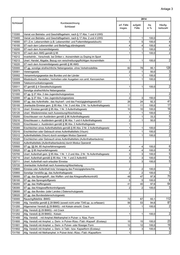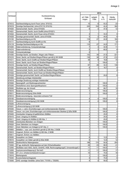 Anlage 3 2014 Schlüssel Kurzbezeichnung erf. Fälle aufgekl. Aq Häufig- Schlüssel insges. Fälle in % keitszahl 715300 Verrat von Betriebs- und Geschäftsgeheim. nach § 17 Abs. 1 und 4 UWG 715400 Verrat von Betriebs- und Geschäftsgeheim. nach § 17 Abs. 2 und 4 UWG 1 1 100,0 2 716000 ST i.Z.m. Lebensmitteln (z.B. Lebensmittel- und Futtermittelgesetzbuch) 5 5 100,0 8 716100 ST nach dem Lebensmittel- und Bedarfsgg.ständegesetz 4 4 100,0 6 716200 ST nach dem Arzneimittelgesetz 1 1 100,0 2 716210 ST nach dem AMG gemäß § 95 1 1 100,0 2 716212 Inverkehrbr., Verschreib. bei Dritten v. Arzneimitteln zu Doping im Sport 716213 Unerl. Handel, Abgabe, Bezug von verschreibungspflichtigen Arzneimitteln 1 1 100,0 2 716220 ST nach dem Arzneimittelgesetz gemäß § 96 AMG 720000 ST gg. sonstige strafrechtliche Nebengesetze -ohne Verkehrsdelikte- 82 78 95,1 128 720001 Vereinsgesetz 2 1 50,0 3 720002 Versammlungsgesetze des Bundes und der Länder 1 1 100,0 2 720005 Missbräuchl. Herstellen, Vertreiben oder Ausgeben von amtl. Kennzeichen 1 1 100,0 2 720009 Telekommunikationsgesetz 720011 ST gemäß § 4 Gewaltschutzgesetz 1 1 100,0 2 720079 Sonstige strafrechtliche Nebengesetze 721000 ST gg. § 27 Abs. 2 des Jugendschutzgesetzes 1 2 722000 ST gg. § 27 Abs. 1 des Jugendschutzgesetzes 2 3 150,0 3 725000 ST gg. das Aufenthalts-, das Asylverf.- und das Freizügigkeitsgesetz/EU 26 24 92,3 41 725100 Unerlaubte Einreise gem. § 95 Abs. 1 Nr. 3 und Abs. 2 Nr. 1a Aufenthaltsgesetz 11 11 100,0 17 725110 Unerl. Einreise gemäß § 95 Abs. 1 Nr. 3 Aufenthaltsgesetz 10 10 100,0 16 725120 Unerl. Wiedereinreise nach Ausweisung/Abschiebung 1 1 100,0 2 725200 Einschleusen von Ausländern gemäß § 96 Aufenthaltsgesetz 3 1 33,3 5 725210 Einschleusen v. Ausländern gemäß § 96 Abs. 1 und 4 Aufenthaltsgesetz 2 1 50,0 3 725220 Einschleusen v. Ausländern gemäß § 96 Abs. 2 Aufenthaltsgesetz 1 2 725300 Erschleichen eines Aufenthaltstitels gemäß § 95 Abs. 2 Nr. 2 Aufenthaltsgesetz 1 1 100,0 2 725310 Erschleichen oder Gebrauch eines Aufenthaltstitels (Visum) 1 1 100,0 2 725312 Aufenthaltstitels (Visum) durch sonstigen Modus Operandi 1 1 100,0 2 725320 Erschleichen oder Gebrauch eines Aufenthaltstitels (Aufenthaltserlaubnis) 725322 Aufenthaltstitels (Aufenthaltserlaubnis) durch Modus Operandi 725500 ST gg. §§ 84, 85 Asylverfahrensgesetz 4 4 100,0 6 725520 ST gg. § 85 Asylverfahrsgesetz 4 4 100,0 6 725700 Unerl. Aufenthalt gem. § 95 Abs. 1 Nr. 1, 2 und Abs. 2 Nr. 1b Aufenthaltsgesetz 3 3 100,0 5 725710 Unerl. Aufenthalt gemäß § 95 Abs. 1 Nr. 1 und 2 AufenthG 3 3 100,0 5 725711 Unerl. Aufenthalt nach erlaubter Einreise 3 3 100,0 5 725720 Unerlaubter Aufenthalt nach Ausweisung/Abschiebung 725800 Einreise oder Aufenthalt trotz Versagung des Freizügigkeitsrechts 2 2 100,0 3 725900 Sonstige Verstöße gg. das Aufenthaltsgesetz 2 2 100,0 3 726000 ST gg. das Sprengstoff-, das Waffen- und das KriegswaffenkontrollG 48 47 97,9 75 726100 ST gg. das Sprengstoffgesetz 5 5 100,0 8 726200 ST gg. das Waffengesetz 41 40 97,6 64 726300 ST gg. das Kriegswaffenkontrollgesetz 2 2 100,0 3 728000 ST gg. das Bundes- (oder Landes-) Datenschutzgesetz 728020 ST gg. das Bundesdatenschutzgesetz 730000 Rauschgiftdelikte -BtMG- 72 67 93,1 112 731000 Allg. Verstöße gemäß § 29 BtMG (soweit nicht unter 7340 pp. zu erfassen) 56 53 94,6 87 731200 Allgemeiner Verstoß (§ 29 BtMG) - mit Kokain einschl. Crack 1 1 100,0 2 731201 Allg. Verstoß (§ 29 BtMG) - mit Crack 731202 Allg. Verstoß (§ 29 BtMG) - Kokain 1 1 100,0 2 731400 Allg. Verstoß - mit Amphet./Methamphet in Pulver- o. flüss. Form 731600 Allg. Verstoß mit Amphet. u. Deriv. in Pulver-/flüss.-/Tabl.-/Kapself. (Ecstasy) 15 15 100,0 23 731601 Allg. Verstoß mit Amphet. u. Deriv. in Pulver- oder flüssiger Form 12 12 100,0 19 731602 Allg. Verstoß mit Amphet. u. Deriv. in Tabl.- bzw. Kapselform (Ecstasy) 3 3 100,0 5 731700 Allg. Verstoß mit Methamphet. in Pulver-/krist.-/flüss.-/Tabl.-/Kapselform 1 2