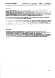 | | | | | | | | Ä : GUTACHTENTEXT Datum der Prüfung: Beschreibung: Crime Wave ist eine actiongeladene Rennsimulation. Die Spielbeschreibung bietet folgende Einführung: Die Stadt Mekeo liegt hart am Rand der Anarchie. Dieses Zukunftsszenario geht davon aus, daß die Polizei nicht mehr der staatlichen Kontrolle unterliegt. Der Plan des Bürgermeisters sieht vor, daß der verbrecherische Verfall veröffentlicht wird und eine Belohnung zur Ergreifung des Täters bzw. der Täter ausgesetzt wird. So bilden sich Gruppen von Kopfgeldjägern, die ruhelos mit ihren Fahrzeugen durch die Straßen streifen. „Die Spannung in der Stadt wuchs ins Unerträgliche. Jetzt steht Mekeo am Rande des Straßenkriegs ohne Halten.“ Die Spielaufgabe wird mit folgenden Worten eingeleitet: „Sie als Kind der Stadt sind ebenfalls Kopfgeldjäger. Man muß ja leben, und Sozialhilfe ist in Zukunft ein Fremdwort.” Das Spiel wird in der isometrischen Sichtweise dargestellt. Trotz abstruser Beschreibung zeigt sich das Spiel als reines Straßenrennspiel, in dem es einen Scannerpfeil gibt, der auf das gegnerische (verbrecherische) Fahrzeug zeigt. Gejagt wird nur das Fahrzeug. Menschen werden in dieser Simulation nicht dargestellt. Es stehen verschiedene Waffen zur Verfügung, die entweder aus dem Bug oder dem Heck abgeschossen werden können. Begründung: Die Spielstory zeigt eine dramatische Situation und vermittelt von der Zukunft ein düsteres Szenario. Alltagsweisheiten wie „Man muß kämpfen, um zu überleben" werden den Spielenden mit der Story vermittelt. Solche Gewaltmuster können ggf. von jüngeren Kindern erkannt und als Verhaltensmuster in ihre Lebensperspektive übernommen werden. Aus diesem Grund sehen die Gutachter eine Reife in der Beurteilung von Lebenssituationen als erforderlich an, um die „Fiktion“ einer solchen Spielgeschichte erkennen zu können. Es kann davon ausgegangen werden, daß Kinder aus dem Bereich Sekundarstufe 1 diese Fähigkeiten mitbringen. Seite: 2