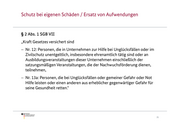 • verschuldensunabhängig: Grenze: vorsätzliches Handeln (§ 13 SGB VII)
