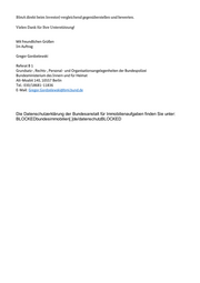 BImA direkt beim Investor) vergleichend gegenüberstellen und bewerten. Vielen Dank für Ihre Unterstützung! Mit freundlichen Grüßen Im Auftrag Gregor Gordzelewski Referat B 1 Grundsatz-, Rechts-, Personal- und Organisationsangelegenheiten der Bundespolizei Bundesministerium des Innern und für Heimat Alt-Moabit 140, 10557 Berlin Tel.: 030/18681-11836 E-Mail: Gregor.Gordzelewski@bmi.bund.de Die Datenschutzerklärung der Bundesanstalt für Immobilienaufgaben finden Sie unter: BLOCKEDbundesimmobilien[.]de/datenschutzBLOCKED