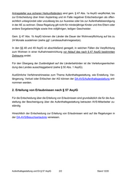 Antragsteller aus sicheren Herkunftsländern sind gem. § 47 Abs. 1a AsylG verpflichtet, bis zur Entscheidung über ihren Asylantrag und im Falle negativer Entscheidungen als offen- sichtlich unbegründet oder unzulässig bis zur Ausreise oder bis zur Aufenthaltsbeendigung in der AE zu wohnen. Diese Regelung gilt nicht für minderjährige Kinder und ihre Eltern oder andere Sorgeberechtigte sowie ihre volljährigen, ledigen Geschwister. Gem. § 47 Abs. 1b AsylG können die Länder die Dauer der Wohnverpflichtung auf bis zu 24 Monate ausdehnen (siehe ggf. Landesaufnahmegesetze). In den §§ 48 und 49 AsylG ist abschließend geregelt, in welchen Fällen die Verpflichtung zum Wohnen in einer Aufnahmeeinrichtung vor Ablauf des nach § 47 AsylG bestimmten Zeitraums endet. Für den Übergang der Zuständigkeit auf die Länderbehörden ist die Verteilungsentschei- dung des Landes ausschlaggebend (siehe § 50 Abs. 1 AsylG). Ausführliche Verfahrenshinweise zum Thema Aufenthaltsgestattung, wie Erstellung, Ver- längerung, Verlust oder Erlöschen der AG können der DA-AVS/Aufenthaltsgestattung ent- nommen werden. 2. Erteilung von Erlaubnissen nach § 57 AsylG Für die Entscheidung über die Erteilung von Erlaubnissen sind grundsätzlich die für die Aus- stellung der Bescheinigung über die Aufenthaltsgestattung betrauten AVS-Mitarbeiter zu- ständig. Hinsichtlich der Entscheidung zur Erteilung von Erlaubnissen wird auf die Regelungen in der DA-AVS/Besuchserlaubnis verwiesen. Aufenthaltsgestattung und Erl.§ 57 AsylG 2/2 Stand 12/20