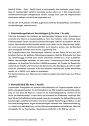 Verstößt der Ausländer gegen diese räumliche Beschränkung und weist er nicht unverzüg- lich nach, dass dies auf Umstände zurückzuführen war, auf die er keinen Einfluss hatte, wird sein Verfahren nach fünf Arbeitstagen eingestellt und kann nur einmal und nur innerhalb von neun Monaten ohne Verfahrensnachteile wieder aufgenommen werden (siehe § 33 AsylG), zum Verfahren siehe Einstellungen – Rücknahme von Asylanträgen). 4. Unbegleitete Minderjährige Unbegleitete minderjährige Ausländer sind nach § 42 SGB VIII vom Jugendamt in Obhut zu nehmen und werden daher auch nicht in BAEn untergebracht, so dass sie auch nicht für ein beschleunigtes Verfahren in Betracht kommen. Beschleunigte Verfahren nach § 30a AsylG 3/3 Stand 03/16