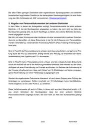 Bei allen Fällen geringer Gewissheit oder ergebnislosem Sprachgutachten und weiterhin bestehenden begründeten Zweifeln an der behaupteten Staatsangehörigkeit, ist eine Ände- rung des HKL-Schlüssels auf „998“ vorzunehmen. (Staatsangehörigkeit). 5. Abgabe von Personaldokumenten bei anderen Behörden In den Fällen, in denen der Antragsteller vorträgt, Personaldokumente bei einer anderen Behörde, z. B. bei der Bundespolizei, abgegeben zu haben, die noch nicht zur Akte des Bundesamtes gelangt sind, ist durch Nachfrage zu klären, bei welcher Behörde die Doku- mente abgegeben wurden. Bei HKL mit hoher Schutzquote oder Verfahren mit einer voraussichtlich positiven Entschei- dung ist zu überprüfen, ob diese Dokumente in der für die Erfassung von Personaldoku- menten verbindlich zu verwendenden Anwendung PassTA (Pass Tracking Anwendung) er- fasst sind. Sind in PassTA die Personaldokumente erfasst, sind diese anzufordern und ggf. einer Prü- fung durch die PTU zu unterziehen. Erfolgt bereits eine Prüfung, ist hinsichtlich der Identi- tätsfeststellung das Ergebnis der PTU abzuwarten. Sind in PassTA keine Personaldokumente erfasst, sind die entsprechenden Dokumente durch den Anhörer bei der in der Anhörung ermittelten Behörde unter Hinweis auf die Eilbe- dürftigkeit mit einer Einschätzung zur Echtheit anzufordern. Im Rahmen der Anforderung ist der Hinweis mit aufzunehmen, dass nach Ablauf von 10 Arbeitstagen und keiner eingegan- genen Rückmeldung von einer Fehlanzeige ausgegangen wird. Werden die angeforderten Dokumente übersandt, ist nach deren Eingang eine Prüfung der Unterlagen zu veranlassen. Sollten innerhalb von 10 Arbeitstagen keine Identitätsdoku- mente eingehen, ist wie unter Punkt 2. zu verfahren. Diese Verfahrensweise gilt auch in Fällen, in denen sich aus dem Akteninhalt ergibt, z. B. aus einem Schreiben der Bundespolizei, dass bei einer anderen Behörde Personaldokumente vorgelegt wurden, die noch nicht zur Akte des Bundesamtes gelangt sind. Identitätsfeststellung 22/22 Stand 06/24