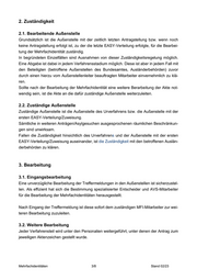 2. Zuständigkeit 2.1. Bearbeitende Außenstelle Grundsätzlich ist die Außenstelle mit der zeitlich letzten Antragstellung bzw. wenn noch keine Antragstellung erfolgt ist, zu der die letzte EASY-Verteilung erfolgte, für die Bearbei- tung der Mehrfachidentität zuständig. In begründeten Einzelfällen sind Ausnahmen von dieser Zuständigkeitsregelung möglich. Eine Abgabe ist dabei in jedem Verfahrensstadium möglich. Diese ist aber in jedem Fall mit den Beteiligten (betroffene Außenstellen des Bundesamtes, Ausländerbehörden) zuvor durch einen hierzu vom Außenstellenleiter beauftragten Mitarbeiter einvernehmlich zu klä- ren. Sollte nach der Bearbeitung der Mehrfachidentität eine weitere Berarbeitung der Akte not- wendig sein, ist die Akte an die dafür zuständige Außenstelle weiterzuleiten. 2.2. Zuständige Außenstelle Zuständige Außenstelle ist die Außenstelle des Urverfahrens bzw. die Außenstelle mit der ersten EASY-Verteilung/Zuweisung. Sämtliche in weiteren Anträgen/Asylgesuchen ausgesprochenen räumlichen Beschränkun- gen sind unwirksam. Fallen die Zuständigkeit hinsichtlich des Urverfahrens und der Außenstelle mit der ersten EASY-Verteilung/Zuweisung auseinander, ist die Zuständigkeit mit den betroffenen Auslän- derbehörden zu klären. 3. Bearbeitung 3.1. Eingangsbearbeitung Eine unverzügliche Bearbeitung der Treffermeldungen in den Außenstellen ist sicherzustel- len. Als effizient hat sich die Bestimmung spezialisierter Entscheider und AVS-Mitarbeiter für die Bearbeitung der Mehrfachidentitäten herausgestellt. Nach Eingang der Treffermeldung ist diese sofort dem zuständigen MFI-Mitarbeiter zur wei- teren Bearbeitung zuzuleiten. 3.2. Weitere Bearbeitung Jeder Verfahrensteil wird unter den Personalien weitergeführt, unter denen der Antrag zum jeweiligen Aktenzeichen gestellt wurde. Mehrfachidentitäten 3/8 Stand 02/23