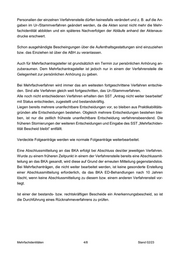 Personalien der einzelnen Verfahrensteile dürfen keinesfalls verändert und z. B. auf die An- gaben im Ur-/Stammverfahren geändert werden, da die Akten sonst nicht mehr die Mehr- fachidentität abbilden und ein späteres Nachverfolgen der Abläufe anhand der Aktenaus- drucke erschwert. Schon ausgehändigte Bescheingungen über die Aufenthaltsgestattungen sind einzuziehen bzw. das Einziehen ist über die ABH zu veranlassen. Auch für Mehrfachantragsteller ist grundsätzlich ein Termin zur persönlichen Anhörung an- zuberaumen. Dem Mehrfachantragsteller ist jedoch nur in einem der Verfahrensteile die Gelegenheit zur persönlichen Anhörung zu geben. Bei Mehrfachverfahren wird immer das am weitesten fortgeschrittene Verfahren entschie- den. Sind alle Verfahren gleich weit fortgeschritten, das Ur-/Stammverfahren. Alle noch nicht entschiedenen Verfahren erhalten den SST „Antrag nicht weiter bearbeitet“ mit Status entschieden, zugestellt und bestandskräftig. Liegen bereits mehrere unanfechtbare Entscheidungen vor, so bleiben aus Praktikabilitäts- gründen alle Entscheidungen bestehen. Obgleich mehrere Entscheidungen bestehen blei- ben, ist nur die zeitlich früheste unanfechtbare Entscheidung verfahrensbeendend. Die früheren Stornierungen der weiteren Entscheidungen und Eingabe des SST „Mehrfachiden- tität Bescheid bleibt“ entfällt. Verdeckte Folgeanträge werden wie normale Folgeanträge weiterbearbeitet. Eine Abschlussmitteilung an das BKA erfolgt bei Abschluss des/der jeweiligen Verfahren. Wurde zu einem früheren Zeitpunkt in einem der Verfahrensteile bereits eine Abschlussmit- teilung an das BKA gesandt, wird diese auf Grund der erneuten Mitteilung gegenstandslos. Bei Mehrfachanträgen, die nicht weiter bearbeitet werden, ist keine gesonderte Erstellung einer Abschlussmitteilung erforderlich, da das BKA ED-Behandlungen nach 10 Jahren löscht, wenn keine Abschlussmitteilung zu diesem bzw. einem anderen Verfahrensteil vor- liegt. Ist einer der bestands- bzw. rechtskräftigen Bescheide ein Anerkennungsbescheid, so ist die Durchführung eines Rücknahmeverfahrens zu prüfen. Mehrfachidentitäten 4/8 Stand 02/23