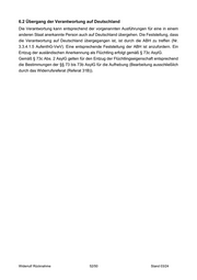 6.2 Übergang der Verantwortung auf Deutschland Die Verantwortung kann entsprechend der vorgenannten Ausführungen für eine in einem anderen Staat anerkannte Person auch auf Deutschland übergehen. Die Feststellung, dass die Verantwortung auf Deutschland übergegangen ist, ist durch die ABH zu treffen (Nr. 3.3.4.1.5 AufenthG-VwV). Eine entsprechende Feststellung der ABH ist anzufordern. Ein Entzug der ausländischen Anerkennung als Flüchtling erfolgt gemäß § 73c AsylG. Gemäß § 73c Abs. 2 AsylG gelten für den Entzug der Flüchtlingseigenschaft entsprechend die Bestimmungen der §§ 73 bis 73b AsylG für die Aufhebung (Bearbeitung ausschließlich durch das Widerrufsreferat (Referat 31B)). Widerruf/ Rücknahme 52/50 Stand 03/24