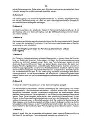 - 28 - bei der Datenauswertung. Dabei sollen auch Anforderungen aus dem europäischen Raum frühzeitig aufgegriffen und konzeptionell abgebildet werden. Zu Nummer 9 Der Datenzugangs- und Koordinierungsstelle werden die in § 2 GDNG festgelegten Aufga- ben bei der Zusammenführung von Daten aus dem Forschungsdatenzentrum und den Da- ten der Klinischen Krebsregister übertragen. Zu Absatz 3 Um Datennutzende an den anfallenden Kosten im Rahmen der Aufgabenerfüllung, z.B. bei der Beratung oder einer Datenverknüpfung nach § 2 GDNG zu beteiligen, können Gebüh- ren erhoben werden. Zu Absatz 4 Die Regelung enthält eine Verordnungsermächtigung des Bundesministeriums für Gesund- heit zu den dort genannten Einzelheiten. Eine Zustimmung des Bundesrates zur Rechts- verordnung ist nicht erforderlich. Zu § 2 (Verknüpfung von Daten des Forschungsdatenzentrums und der Krebsregister) Zu Absatz 1 Um Fragen zu Krebserkrankungen umfassend beantworten zu können, muss die Verknüp- fung von Daten der klinischen Krebsregister mit Daten des Forschungsdatenzentrums rechtlich und technisch geregelt werden. Denn viele Forschungsfragen lassen sich erst durch das Zusammenführen von Daten aus beiden Quellen beantworten. So bieten zum Beispiel Abrechnungsdaten einen breiten Blick über Patientenpfade durch die unterschied- lichen Versorgungsbereiche und für diverse Krankheitsbilder im Zeitablauf, während Daten der klinischen Krebsregister tiefgehende Informationen zu spezifischen Behandlungen ei- nes Krankheitsbildes erlauben. Nur die Verknüpfung erlaubt ein vollständiges Bild des Be- handlungsverlaufs und der Kontextfaktoren, die Analyse von Früherkennungsmerkmalen oder die Identifikation von gesundheitsbedingten Risikofaktoren für bestimmte Krebserkran- kungen. Zu Absatz 2 In Absatz 2 werden Voraussetzungen für die Datenverknüpfung geregelt. Für die Verknüpfung nach Absatz 1 ist eine Genehmigung der Datenzugangs- und Koordi- nierungsstelle für Gesundheitsdaten erforderlich. Zusätzlich müssen vom Forschungsda- tenzentrum Gesundheit und den zuständigen Krebsregistern als datenhaltenden Stellen ebenfalls die erforderlichen Genehmigungen für den Zugang zu den jeweiligen Daten erteilt werden. Diese Genehmigungen stellen sicher, dass sowohl die Voraussetzungen für den Zugang zu den Daten des Forschungsdatenzentrums bzw. der Krebsregister nach den je- weiligen Voraussetzungen im Einzelfall gegeben sind. Die zusätzliche Genehmigung der Datenzugangs- und Koordinierungsstelle ist nötig, da durch die Zusammenführung der Da- ten zusätzliche Informationen zu den Versicherten generiert werden, die in Abwägung zur Notwendigkeit für die Beantwortung der Forschungsfrage erneut bewertet werden müssen. Zu Absatz 3 Absatz 3 regelt, dass die Antragsteller nachzuweisen haben, dass die Zusammenführung der Daten für den verfolgten Forschungszweck geeignet und erforderlich ist.