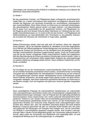 - 70 - Bearbeitungsstand: 25.08.2023 20:53 bloß dem potenziell betroffenen Personenkreis gegenüber Informationen über die Daten- verarbeitung zu veröffentlichen, sondern auch für die Allgemeinheit einsehbar. Damit wird gewährleistet, dass nicht bloß der möglicherweise vulnerable Personenkreis, sondern auch Dritte unabhängig überprüfen können, dass die Datenverarbeitungen nach Absatz 1 nicht entgegen des mutmaßlichen Interesses der betroffenen Person erfolgen. Zu Absatz 4 Wenn eine konkrete Gesundheitsgefährdung erkannt wird, sollen Kranken- und Pflegekas- sen die betroffenen Versicherten auf geeignetem Weg unverzüglich darüber informieren und die Kontaktaufnahme mit einem geeigneten Leistungserbringer empfehlen. In beson- ders dringenden Fällen sollte die Kontaktaufnahme telefonisch erfolgen. Dabei dürfen keine Vorgaben hinsichtlich der Beseitigung der Gefährdung gemacht werden. Die Therapiefrei- heit der Leistungserbringer wird somit nicht eingeschränkt und die Wahlfreiheit der Versi- cherten wird damit nicht beschränkt. Die Kranken- und Pflegekassen haben dafür Sorge zu tragen, dass durch die Information der Versicherten keine Gefährdung derselben entsteht. So ist etwa darauf zu achten, dass Versicherte nach einem Hinweis auf mögliche Arzneimittelwechselwirkungen medizini- schen Rat einholen, anstatt selbständig Medikamente abzusetzen. Zu Absatz 5 Neben dem Recht auf Nichtwissen sollte auch dem Auskunftsrecht nach Artikel 15 der Ver- ordnung (EU) 679/2016 entsprochen werden. Kranken- und Pflegekassen sind daher aus- drücklich verpflichtet auf Nachfrage die konkrete Datengrundlage mitzuteilen, die zu einem Hinweis nach Absatz 2 oder 4 geführt hat. Dies dient der Transparenz gegenüber den Ver- sicherten und erleichtert die ärztliche, zahnärztliche, psychotherapeutische, oder pflegeri- sche Beratung durch beteiligte Leistungserbringer. Zu Absatz 6 Absatz regelt, dass Versicherte, die einer Datenverarbeitung widersprochen haben weder bevorzugt noch benachteiligt werden dürfen und damit Versicherte durch ihre Kranken- o- der Pflegekassen nicht zur Nutzung bestimmter Leistungen gedrängt oder davon abgehal- ten werden. Zu Absatz 7 Um die Wirksamkeit der Hinweise nach Absatz 1 und Absatz 4 beurteilen zu können und auch um unabhängig überprüfen zu können, dass die Datenverarbeitungen nach Absatz 1 nicht entgegen des mutmaßlichen Interesses der betroffenen Person erfolgt ist, haben alle Kranken- und Pflegekassen über die Datenverarbeitungen und Hinweise nach Absatz 1 und Absatz 4 den Spitzenverband Bund der Krankenkassen regelmäßig zu informieren. Dieser hat dem Bundesministerium für Gesundheit hierzu jährlich zu berichten. Im Rahmen der Evaluierung wird das Bundesministerium für Gesundheit fünf Jahre nach Inkrafttreten des Gesetzes überprüfen, wie und in welchem Umfang Versicherte über eine automatisierte Verarbeitung zu Zwecken des Gesundheitsschutzes nach § 25b informiert wurden, wie und in welchem Umfang solche Maßnahmen durchgeführt wurden und welche Auswirkungen sie auf die Versorgung haben. Zu Nummer 3 Zu Buchstabe a Die – unabhängig von der Genomsequenzierung – durchgeführten Leistungen im Rahmen des Modellvorhabens sind als medizinische Behandlungen zu qualifizieren. Sie bedürfen daher der Einwilligung der Versicherten nach § 630d Bürgerliches Gesetzbuch. Diese Norm