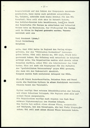 -13- hauptsächlich auf dem Gebiet der Propaganda zusammen gearbeitet. Laux wurde auch geldlich unterstützt. Er, Caignet, schreibe noch heute Artikel für den NS- Kampfruf. Dies soll sich aber in Zukunft ändern. Das Zwölfer-Gremium habe beschlossen, Laueden Druck des Kampfrufes für Europa zu entz/iehen und keinerlei Gelder mehr zu überweisen. Der MS-Kapf ruf für Europa soll in Kürze in England gedruckt werden. Verant wortlich soll ein Toni Handcook (phon.) Hotel Heidelberg Brighton sein. Axel Kühl hatte in England den Verlag mitge gründet, der den ’’Völkischen Beobachter” herausge geben hatte. Kühl soll damals ca. 800 engl. Pfund bei gesteuert haben. Die Gründung soll notariell in Brighton erfolgt sein. Die Organisation machte sich damals schon Gedanken darüber, woher Kühl als Arbeitsloser das Celd hatte. Dies sei auch ein Hauptgrund für die Aufnahme der ’’gerichtlichen Untersuchung” gegen Kühl gewesen, die dann mit dem Todesurteil abschloß. Caignet warnte Koch nocheinmal dringend vor Kühl. 20.4.82 Fahrt Bern-Base-Paris. Zwischen Bern und Basel wurde die Munition Rythers in einem Steinbruch versteckt. (Quelle kennt das Versteck). Ryther verfügt über mehrere Identitätskarten der Schweiz und einem Schweizer Reisepaß. Die Papiere sind alle auf ' seinem Namen ausgestellt. Dio Organisation verfügt nach Angaben von Koch über mehrere Diplomatenpässe des Staates Libyen. Die Quelle hat selbst einen dieser Pässe, ausgestellt auf Wolfgram, bei den Unterlagen, die bei Vicky liegen,ce- schon. Uhl soll auch einen dieser Pässe besessen haben.
