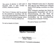 GTSOU's behalf. In connection with the mit dem Vorstehenden berechtigt, alle