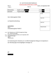 Zur Vorbereitung Ihre Teilnahme am 2. US-DEU Strategischem Dialog am 16. September in