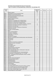Polizeiliche Kriminalstatistik Revierbereich Finsterwalde Frage 36: Straftaten und Staatsangehörige nichtdeutscher Tatverdächtiger 2012 Schlüssel- Anzahl nicht- Bosnien und zahl der Straftat deutsche TV Albanien Andorra Belgien Herzegowina Tat insges. ------ Straftaten insgesamt 45 1 200000 Rohheitsdelikte und ST gg. die persönliche Freiheit 11 222000 Gefährliche und schwere Körperverletzung 3 224000 Vorsätzliche einfache Körperverletzung § 223 StGB 7 435*00 Wohnungseinbruchdiebstahl 436*00 Tageswohnungseinbruchdiebstahl ****00 Diebstahl insgesamt 19 1 ***100 Diebstahl insg. von Kraftwagen einschl. unbefugter Gebrauch 5 ***200 Diebstahl insg. von Moped/Krad einschl. unbefugte Gebrauch ***300 Diebstahl insg. von Fahrrad einschl. unbefugter Gebrauch *10*00 Diebstahl insg. in/aus Dienst-, Büro-, Fabrikations-,Werkstatt- u. Lagerräumen 2 1 *25*00 Diebstahl insg. in/aus Kiosken, Warenhäusern, Verkaufsräumen 10 *35*00 Diebstahl insg. in/aus Wohnungen *40*00 Diebstahl insg. in/aus Boden-, Kellerräumen und Waschküchen *50*00 Diebstahl insg. an/aus Kfz 500000 Vermögens- und Fälschungsdelikte 7 510000 Betrug 3 511000 Waren- und Warenkreditbetrug 512000 Grundstücks- und Baubetrug 513000 Kapitalanlage- und Anlagebetrug 514000 Geldkreditbetrug 515000 Erschleichen von Leistungen 1 516000 Betrug bzw. Computerbetrug mittels rechtswidrig erlangter unbarer Zahlungsmittel 517000 Sonstiger Betrug 2 520000 Veruntreuungen 2 521000 Untreue 522000 Vorenthalten und Veruntreuen von Arbeitsentgelt 2 523000 Missbrauch von Scheck- und Kreditkarten 530000 Unterschlagung 1 531000 Unterschlagung von Kfz 540000 Urkundenfälschung 1 541000 Fälschung technischer Aufzeichnungen 542000 Fälschung zur Erlangung von Btm 543000 Fälsch. beweiserhebl. Daten, Täusch. im Rechtsverkehr b. Datenverarb. 550000 Geld- und Wertzeichenfälschung 551000 Geld- und Wertzeichenfälschung einschl. Vorbereitungshandlungen 552000 Inverkehrbringen von Falschgeld §§ 146 Abs. 1 Nr. 3, 147 StGB 553000 Fälsch. v. Zahlungskarten mit/ohne Garantiefunktion, Schecks u. Wechseln 560000 Insolvenzstraftaten 561000 Bankrott 562000 Besonders schwerer Fall des Bankrotts 563000 Verletzung der Buchführungspflicht 564000 Gläubigerbegünstigung 565000 Schuldnerbegünstigung 621020 Widerstand gg. Vollstreckungsbeamte 674000 Sachbeschädigung 1 726200 ST gg. das Waffengesetz 2 731000 Allg. Verstöße gemäß § 29 BtMG (soweit nicht unter 7340 pp. zu erfassen) 1 732000 Unerl. Handel/Schmuggel mit/von Rauschgiften gemäß § 29 BtMG 733000 Unerl. Einfuhr von Btm gemäß § 30 Abs. 1 Nr. 4 BtMG (in ngM) 734800 Unerl. Handel, Herstellung, Abgabe und Besitz in ngM von Btm 899500 Sachbeschädigung durch Graffiti insgesamt Seite 35 von 171