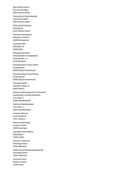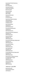 Stadt Weimar Schwanseestraße 17 99421 Weimar Gemeinde Bothenheilingen Anger 106 99947 Bothenheilingen Gemeinde Issersheilingen Hauptstraße 3 99947 Issersheilingen Gemeinde Neunheilingen Schloßgasse 07 99947 Neunheilingen Gemeinde Marolterode Hauptstraße 20 99994 Marolterode Gemeinde Kleinwelsbach Markt 1 99994 Schlotheim Stadt Schlotheim Markt 1 99994 Schlotheim Verwaltungsgemeinschaft Schlotheim Markt 1 99994 Schlotheim Gemeinde Obermehler Hauptstraße 13 99996 Obermehler Gemeinde Körner August-Bebel-Straße 18 99998 Körner Verzicht zum 1. Dezember 2019: Stadt Stolpen Markt 1 01833 Stolpen Abwasserverband Köthen Maxdorfer Straße 19 b 06366 Köthen Zweckverband Restabfallbehandlung Ostthüringen De-Smit-Straße 18 07551 Gera Hochschule für Technik und Wirtschaft Berlin Treskowallee 8 10318 Berlin Kassenzahnärztliche Vereinigung Land Brandenburg Helene-Lange-Straße 4-5 14469 Potsdam Stadt Bad Freienwalde Karl-Marx-Straße 1 16259 Bad Freienwalde (Oder)