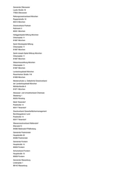 Gemeinde Ottersweier Laufer Straße 18 77833 Ottersweier Rettungszweckverband München Ruppertstraße 19 80313 München Zweckverband Freiham Roßmarkt 3 80331 München Heiliggeistspital-Stiftung München Orleansplatz 11 81667 München Sankt Nikolaispital-Stiftung Orleansplatz 11 81667 München Sankt-Joseph-Spital-Stiftung München Orleansplatz 11 81667 München Waisenhausstiftung München Orleansplatz 11 81667 München Landeshauptstadt München Rosenheimer Straße 118 81669 München Meisterschulen a. Ostbahnhof Zweckverband der Landeshauptstadt München Mühldorfstraße 6 81671 München Abwasser- und Umweltverband Chiemsee Stiedering 1 83253 Rimsting Markt Teisendorf Poststraße 14 83317 Teisendorf Zweckverband Gewerbeflächenmanagement Berchtesgadener Land Poststraße 14 83317 Teisendorf Wasserzweckverband Mallersdorf Ettersdorf 3 84066 Mallersdorf-Pfaffenberg Gemeinde Postmünster Hauptstraße 23 84389 Postmünster Gemeinde Forstern Hauptstraße 15 85659 Forstern Schulverband Forstern Hauptstraße 15 85659 Forstern Gemeinde Wasserburg Lindenplatz 1 88142 Wasserburg