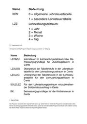 2. Erläuterungen 2.1 Allgemeines Es sind tägliche, wöchentliche, monatliche und jährliche Lohnzahlungszeiträume berücksichtigt. Die Aufteilung von Jahresbeträgen auf unterjährige Lohnzahlungszeiträume wird entsprechend den in § 39b Abs. 2 Satz 5 EStG angegebenen Bruchteilen vorgenom‐ men. Bruchteile eines Cents werden entsprechend den Angaben im Programmablaufplan auf ganze Cents aufgerundet bzw. blei‐ ben außer Ansatz. Hat ein Rechenergebnis oder ein zu übertragendes Feld Dezimalstellen, die im Empfangsfeld nicht vorgesehen sind, und es ist im Programmablaufplan nichts anderes angegeben, sind diese überschüssigen Dezimalstellen wegzulassen. Der "Programmablaufplan für die Erstellung von Lohnsteuertabellen in 2004" ist an den "Programmablaufplan für die maschinelle Berechnung der vom Arbeitslohn einzubehaltenden Lohnsteuer, des Solidaritätszuschlags und der Maßstabsteuer für die Kirchen‐ lohnsteuer in 2004" angelehnt. So sind Felder und Unterprogramme häufig identisch. 2.2 Feldlängen Das Format und die Länge der Parameter und internen Felder sind bei der Programmierung (Codierung) zu bestimmen, soweit sie sich nicht unmittelbar aus den Erläuterungen oder dem Programmablaufplan ergeben. Feldbeschreibungen ohne Stellenangaben beziehen sich auf Ganzzahlen, ansonsten sind die Nachkommastellen angegeben. Bei der Steuerberechnung werden Gleitkommafelder verwendet. 2.3 Symbole Die im Programmablaufplan verwendeten Sinnbilder entsprechen der Zeichenschablone nach DIN 66001. Darüber hinaus bedeuten: 3. Schnittstellenkonventionen 3.1 Eingangsparameter Die Plausibilität der Parameter wird im Programm nicht geprüft. Sie müssen daher in Vorprogrammen des Arbeitgebers abgesichert werden. Es kommen z. B. in Betracht: - Vorzeichenprüfung; - Prüfung auf gültigen Inhalt (z. B. Wert in LZZ nur 1, 2, 3 oder 4). Es werden folgende Eingangsparameter benötigt: