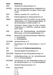 1. Gesetzliche Grundlagen Der Programmablaufplan enthält gem. § 52 Abs. 59c EStG die Berechnung für die Herstellung von Lohnsteuertabellen einschließ‐ lich der Berechnung des Solidaritätszuschlags und der Bemessungsgrundlage für die Kirchensteuer mit Lohnstufen. Er berücksich‐ tigt die im Haushaltsbegleitgesetz 2004 vorgesehenen Änderungen (teilweises Vorziehen des Tarifs 2005 nach 2004, Kürzung des Arbeitnehmer-Pauschbetrags auf 920 Euro, Streichung des Haushaltsfreibetrags sowie Einführung eines Entlastungsbetrags für Al‐ leinerziehende in Höhe von 1 308 Euro).