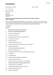 BStbl Seite 581 Umsatzsteuer Bundesministerium der Finanzen Bonn, 8. Juni 1999 IV D 1 - S 7300 - 63/99 Oberste Finanzbehörden der L ä n d e r nachrichtlich: Vertretungen der Länder beim Bund Vorsteuerabzug und Umsatzbesteuerung bei unternehmerisch genutzten Fahrzeugen ab dem 1. April 1999 Artikel 7 des Steuerentlastungsgesetzes 1999/2000/2002 vom 24. März 1999 (BGBl. I S. 402, BStBl I S. 304) enthält Einschränkun‐ gen des Vorsteuerabzugs und Neuregelungen zur Umsatzbesteuerung unternehmerisch genutzter Fahrzeuge, die zum 1. April 1999 in Kraft getreten sind. Im Einvernehmen mit den obersten Finanzbehörden der Länder gilt hierzu folgendes: Inhaltsübersicht Randzahlen 1. Zeitpunkt des Erwerbs, Beginn des Mietverhältnisses1 2. Nach dem 31. März 1999 erworbene Fahrzeuge2-14 2.1 Erwerb mit Vorsteuerabzugsrecht2-12 2.1.1 Zuordnung zum Unternehmen2 2.1.2 Vorsteuerabzug aus den Anschaffungs- und Unterhaltskosten3-6 2.1.3 Veräußerung oder Entnahme7-8 2.1.4 Nutzungsänderungen9-12 2.2 Erwerb ohne Vorsteuerabzugsrecht13-14 2.2.1 Zuordnung zum Unternehmen und Vorsteuerabzug aus den Fahrzeugkosten13 2.2.2 Veräußerung oder Entnahme14 3. Vor dem 1. April 1999 erworbene Fahrzeuge15-22 3.1 Erwerb mit Vorsteuerabzugsrecht15 3.1.1 Bemessungsgrundlage für die Besteuerung der nichtunternehmerischen Nutzung16 3.1.1.1 1 %-Regelung17 3.1.1.2 Fahrtenbuchregelung18 3.1.1.3 Schätzung des nichtunternehmerischen Nutzungsanteils19 3.2 Erwerb ohne Vorsteuerabzugsrecht20-21 3.3 Fahrten des Unternehmers zwischen Wohnung und Betriebsstätte22 4. Überlassung von erworbenen Fahrzeugen an das Personal23-32 4.1 Vorsteuerabzug aus den Fahrzeugkosten23 4.2 Besteuerung der Fahrzeugüberlassung an das Personal24-32 4.2.1 Entgeltliche Fahrzeugüberlassung24-29 4.2.1.1 Merkmale für Entgeltlichkeit24