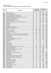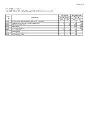 Seite 14 von 85 Revierbereich Neuruppin Frage 32: Schadenstabelle für ausgewählte Deliktsfelder Berichtszeitraum: 01.01.2010 bis 31.12.2010 Schl.- Schadensklassen Zahl der Fälle zahl Straftat 1 15 50 250 500 2500 5T 25T 50T Schadenssumme der insgesamt vollendet versucht bis unter Euro und in Euro Tat 15 50 250 500 2500 5T 25T 50T mehr 562000 Besonders schwerer Fall des Bankrotts 563000 Verletzung der Buchführungspflicht 564000 Gläubigerbegünstigung 565000 Schuldnerbegünstigung 621020 Widerstand gg. Vollstreckungsbeamte 674000 Sachbeschädigung 726200 ST gg. das Waffengesetz 731000 Allg. Verstöße gemäß § 29 BtMG (soweit nicht unter 7340 pp. zu erfassen) 732000 Unerl. Handel/Schmuggel mit/von Rauschgiften gemäß § 29 BtMG 733000 Unerl. Einfuhr von Btm gemäß § 30 Abs. 1 Nr. 4 BtMG (in ngM) 734800 Unerl. Handel, Herstellung, Abgabe und Besitz in ngM von Btm 899500 Sachbeschädigung durch Graffiti insgesamt