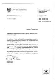 Confirmation of required business activities in Germany, Gigafactory Gruen-