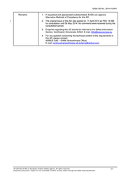 Remarks: 1. If requested and appropriately substantiated, EASA can approve