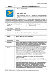 Reason: Following an unscheduled internal inspection of an A380 wing, some rib feet
