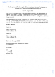 Die Bekanntmachung über die Festlegung von Gebieten mit Flugbeschränkungen