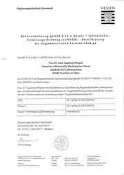 Bekanntmachung der Gemeinsamen Oberen Luftfahrtbehörde der Länder Berlin und Brandenburg über die besondere Ermächtigung von Inhabern von Prüferberechtigungen zur handschriftlichen Eintragung in Lizenzen gemäß ARA.FCL.200 c) 1. Inhaber einer von einer deutschen Luftfahrtbehörde nach § 128 LuftPersV in Verbindung mit JAR-FCL deutsch 1.030/2.030 (Flugzeuge/Hubschrauber) erteilten Prüferanerkennung, die nach dem 08.04.2013 als Prüferberechtigung gemäß Verordnung (EU) Nr. 1178/2011, Anhang I, FCL.1000 gilt, sowie Inhaber einer von einer deutschen Luftfahrtbehörde nach FCL.1000 erteilten Prüferberechtigung werden gemäß ARA.FCL.200 c) zusätzlich ermächtigt, handschriftlich a) Eintragungen von Verlängerungen und Erneuerungen von Klassen-, Muster- und Lehrberechtigungen gemäß FCL.1030 b) (2), b) Eintragungen von Verlängerungen von Klassen- und Musterberechtigungen für einmotorige Flugzeuge mit Kolbentriebwerk mit einem Piloten und TMG- Berechtigungen gemäß FCL.740.A b) (1) ii Spiegelstrich 3 in Lizenzen vorzunehmen, die von der Gemeinsamen Oberen Luftfahrtbe- hörde der Länder Berlin und Brandenburg ausgestellt worden sind. 2. Nach Durchführung jeder, auch nicht bestandenen, praktischen Prüfung, Befähigungsüberprüfung oder Kompetenzbeurteilung mit einem Inhaber einer bei der Gemeinsamen Oberen Luftfahrtbehörde der Länder Berlin und Brandenburg geführten Lizenz ist der komplette Bericht des Prüfers (alle Seiten) und die Flugvorbereitung des Bewerbers (soweit nach Luftfahrzeug- kategorie maßgeblich: Flugdurchführungsplan, Kraftstoffberechnung, Berech- nung von Masse und Schwerpunktlage, Start- und Landestreckenberechnung, Wetter- und NOTAM-Briefing) der Behörde vorzulegen (FCL.1030 d)). Schönefeld, 13.05.2013 Az.: 4131-5.02.12-NfL-01/2013 Gemeinsame Obere Luftfahrtbehörde der Länder Berlin und Brandenburg i.A. Nürnberger