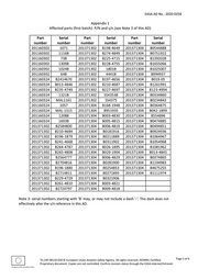 Affected parts (second batch): P/N and s/n (see Note 3 of this AD)