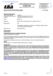 EASA AD 2022-0257 vom 21.12.2022 herausgegeben oder per Entscheidung Nr. 2019/018/ED übernommen.