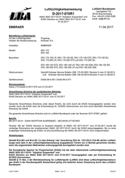 Mit Hilfe dieser Übersichtsseite veröffentlicht das Luftfahrt-Bundesamt ebenfalls die über § 14 Abs. 2 direkt gültigen Lufttüchtigkeitsanweisungen der EASA in den Nachrichten für Luftfahrer und im Internet unter www2.LBA.de/LTAs/. Dieser Service dient reinen Informationszwecken und liegt keinem Verwaltungsver- fahren zu Grunde. Rechtsmittel sind damit ausgeschlossen. D-2017-070R1 Seite 2 von 2 143/2017