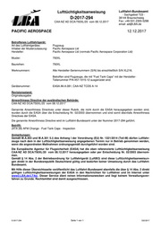 Inhaber der Musterzulassung: Pacific Aerospace Ltd