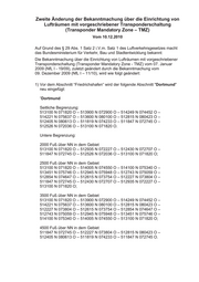 2 Obere Begrenzung: Flugfläche 65. Zeitliche Wirksamkeit: 24 Stunden täglich. Ausnahmen von dieser Verpflichtung können fernmündlich oder über Sprechfunk von der zuständigen Flugsicherungsstelle über 'Langen Radar' (Frequenz 125,225 MHz) zugelassen werden, wenn die Sicherheit des Luftverkehrs dadurch nicht beeinträchtigt wird. Ausnahmen für Segelflüge: Von der vorgenannten Verpflichtung zusätzlich ausgenommen sind Segelflüge innerhalb der nachstehend beschriebenen Sektoren unter den aufgeführten Bedingungen: Sektor "Dortmund-Nord" Seitliche Begrenzung: 513900 N 072900 O – 514110 N 073800 O – 513740 N 073825 O – 513526 N 073702 O – 513445 N 073707 O – 513122 N 073731 O – 513046 N 073747 O – 513030 N 074216 O – 513008 N 074303 O – 512810 N 073728 O – 513054 N 073611 O – 513331 N 073335 O – 513442 N 073224 O – 513900 N 072900 O. Vertikale Begrenzung: a) Jeweilige Untergrenze der TMZ Dortmund bis 5500 Fuß über NN in dem Gebiet: 513900 N 072900 O – 514110 N 073800 O – 513740 N 073825 O – 513526 N 073702 O – 513445 N 073707 O – 513331 N 073335 O – 513442 N 073224 O – 513900 N 072900 O; (nördlich der Kontrollzone Dortmund) b) 3500 Fuß über NN bis 5500 Fuß über NN in dem Gebiet: 513331 N 073335 O – 513445 N 073707 O – 513122 N 073731 O - 513046 N 073747 O – 513030 N 074216 O – 513008 N 074303 O - 512810 N 073728 O – 513054 N 073611 O – 513331 N 073335 O. (oberhalb Kontrollzone Dortmund) Sektor "Dortmund-Süd" Seitliche Begrenzung: 512810 N 073728 O – 513008 N 074303 O – 512659 N 074957 O – 512521 N 075110 O – 512111 N 075414 O – 512000 N 074925 O – 512330 N 074249 O – 512544 N 073836 O – 512810 N 073728 O. Vertikale Begrenzung: a) Jeweilige Untergrenze der TMZ Dortmund bis 5500 Fuß über NN in dem Gebiet: 512810 N 073728 O – 513008 N 074303 O – 512659 N 074957 O – 512521 N 075110 O – 512330 N 074249 O – 512544 N 073836 O – 512810 N 073728 O;