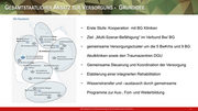 G ESAMTSTAATLICHER A NSATZ ZUR V ERSORGUNG - G RUNDIDEE −Erste Stufe: Kooperation mit BG Kliniken −Ziel: „Multi-Szenar -Befähigung“ im Verbund Bw/ BG −gemeinsame Versorgungscluster um die 5 BwKrhs und 9 BG Akutkliniken sowie den Traumazentren DGU −Gemeinsame Steuerung und Koordination der Versorgung −Etablierung einer integrierten Rehabilitation −Wissenstransfer und –austausch durch gemeinsame Programme zur Aus -, Fort -und Weiterbildung 5