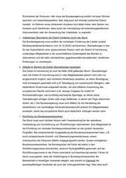 5 Rücknahme der Personen. Hier muss die Bundesregierung endlich mit einer Stimme sprechen und ressortübergreifend, falls nötig auch auf höchster politischer Ebene handeln. Im Rahmen eines kohärenten Ansatzes sind dabei neben dem Setzen von Anreizen auch Sanktionen, etwa durch die Verknüpfung mit entwicklungspolitischen Instrum entarien oder der Anwendung des Visahebels, zu ergreifen. j. Vollständige Übernahme der Dublin-Verfahren durch den Bund Die Bundesregierung muss endlich der einhelligen Forderung der Länder (zuletzt Ministerpräsidentenkonferenz vom 25.10.2024) nachkommen, Überstellungen in den für das Asylverfahren einer asylsuchenden Person nach der Dublin-III-Verordnung zuständigen Mitgliedstaat in die ausschließliche Zuständigkeit des Bundes zu übernehmen und die dafür erforderlichen, gegebenenfalls klarstellenden, rechtlic hen Änderungen zu veranlassen. k. Defizite im Bereich bei Dublin-Überstellungen beseitigen Die Dublin-III-Verordnung ist noch bis Mitte 2026 geltendes Recht. Überstellungen nach der Dublin-III-Verordnung sind in viele Mitgliedstaaten jedoch nicht oder nur eingeschränkt möglich, weil rechtliche Hindernisse bestehen, an deren Beseitigung nicht konsequent gearbeitet wird (z.B. Beseitigung von systemischen Mängeln) , oder tatsächliche Hindernisse aufgestellt werden, die eine effektive Anwendung des europäischen Rechts verhindern (z.B. strenge Vorgaben für Dublin-III-Rücküberstellungen, wie kurzfristig wechselnde Sperrtage, an denen keine Überstellungen erfolgen dürfen oder enge Zeitfenster, in denen die Flüge ankommen dürfen, etc.). Die Bundesregierung muss sich effektiv für die Herstellung der tatsächlichen und nachhaltigen Rücknahmebereitschaft anderer EU -Mitgliedstaaten einsetzen, damit das europäische Recht auch tatsächlich vollzogen werden kann. l. Errichtung von Bundesausreisezentren Der Bund muss auch darüber hinaus mehr Verantwortung bei der operativen Vorbereitung und Durchführung von Rückführungen übernehmen. Eine Möglichkeit ist die Errichtung von zentralen Bundesausreisezentren an den großen deutschen Flughäfen. Bei entsprechender Ausgestaltung der Bundesausreisezentren kann, z.B. durch entsprechende Kontroll - und Überwachungsmechanismen, einem Untertauchen der Personen effektiv entgegengewirkt werden. Zudem ermöglichen Bundesausreisezentren, die Bundespolizei viel früher als bisher in den Rückführungsprozess einzubinden, wodurch Synergieeffekte gewonnen und der Rückführungsprozess in der Praxis vereinfacht und beschleunigt werden. Ferner ist davon auszugehen, dass die Unterbringung in Bundesausreisezentren die Bereitschaft zu frei willigen Ausreisen steigert, was sowohl im Interesse der ausreisepflichtigen Ausländer als auch der Vollzugsbehörden liegt. Dies wäre auch