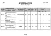 BMF Erfassung der Zahlungen an externe Berater gem. Beschlüssen des HA vom 28.06.2006 und des RPA vom 10.03.2017 Vertragsvolumen über 50.000 €Anlage 1 (Blatt 2) Kap./Titel (nur 9 Zahlen erfassen)a) Vertragszweck (stichwortartig) b) Benennung des Rahmenvertrags (ggf.) c) Normsetzung (ja/nein) d) Laufzeit (Monat/Jahr - Monat/Jahr)Name des Auftragnehmers / Keine Zustimmung zur NamensnennungAus- schrei- bung (Ja/Nein)Vertrags- volumen in €Honorar nach Aufwand/ Stunden (Ja)Ausgaben in 2017 in €Summe G bis J 2018 2019 2020Verpflichtungen in € (nur Zahlen) 0616 539 19a) Begleitende Beratungsleistung für die Organisations- und Aufgabenuntersuchung der GDI-DE (Evaluierung) und Nachbereitung der Evaluierung 19) b) Abruf aus RV 2954 des BeschA c) nein d) 04/2016 - 04/2018Sopra Steria GmbH Nein 118.919 Ja 45.116 14.122 0 0 59.238 0612 532 01 a) Konzeption und Weiterentwicklung des Internetauftritts des BMI b) Abruf aus RV des ITZ-Bund (3PM) c) nein d) 01/2017 - 12/2017Keine Zustimmung zur NamensnennungJa 478.165 Ja 446.941 0 0 0 446.941 0612 532 01 a) Erstellung Migrationskonzept Exchange 2017 für BMI b) Abruf aus RV des BESCHA c) nein d) 11/2016 - 12/2017Keine Zustimmung zur NamensnennungJa 298.633 Ja 267.846 0 0 0 267.846 72 von 167