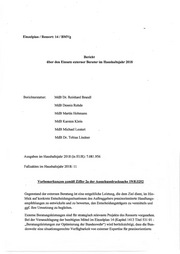 Erfassung der Zahlungen an externe Berater gern. Beschlüssen des HA vom 28.06.2006, RPA vom 10.03.2017 und des HA vom 13.02.2019 Vertragsvolumen über 50.000 A C D E F G i H I J K Kap./Titel (nur 9 Zahlen erfassen) a) Vertragszweck (stichwortartig) b) Benennung des Rahmenvertrags (ggf.) c) Normsetzung (ja/nein) d) Laufzeit (Monat/Jahr • Monat/Jahr) Name des Auftragnehmers / keine Zustimmung zur Namensnennung Aus- schrei- bung (ja/nein) Vertrags- volumen in E Honorar nach Aufwand/ Stunden (Ja) Ausgaben in 2018 in E Verpflichtungen in E (nur Zahlen) Summe G bis J 2019 2020 2021 1218 812 02 a) Einheitliches Prozessmanagement und Prozessoptimierung für die WSV, BAW sowie BfG und Implementierung in elektronische Dokumentenmanagement- und ERP-Systeme b) RV Nr. 20404 des BVA c) Normsetzung (nein) d) Laufzeit: 12/2017 - 06/2019 keine Zustimmung zur Namensnennung ja 1.763.580 ja 520.534 1.243.046 > 0 0 1.763.580 1219 539 09 a) Beraterleistung im Steuerrecht und in der Finanzbuchhaltung im Rahmen des BSH-Projektes "Erarbeitung eines Konzeptes zur rechtskonformen Behandlung von Leistungen/ Produkten des BSH, die unter einen Betrieb gewerblicher Art bzw. die Umsatzsteuerpflicht fallen"; b) — c) Normsetzung (nein) d) Laufzeit: 04/2017 - 02/2019 Trinavis GmbH & Co. KG ja 290.884 ja 56.578 113.422 31.043 0 201.043 1219 539 09 a) Weiterentwicklung der KLR 1) b) Abruf aus RV Nr. 2954 des BVA c) Normsetzung (nein) d) Laufzeit: 11/2017 - 03/2019 Sopra Steria Consulting AG ja 157.080 ja 124.236 32.844 0 0 157.080 1219 539 09 a) Umsetzung des Gesetzes zur Förderung der elektronischen Verwaltung im BSH (E-Govemment- Gesetzt-EGOVG) 1) b) Abruf aus RV Nr. 2909 des BVA c) Normsetzung (nein) d) Laufzeit: 02/2017 - 12/2019 Sopra Steria Consulting AG ja 731.375 ja 108.607 403.449 0 0 512.056 45.320.458 217.567 15 Verträge unter 50.000 € 45.538.025 1) Die Änderung der Laufzeit gegenüber der Vorjahresmeldung resultiert aus der Verlängerung des Vertrags. 2) Die Erhöhung des Vertragsvolumens gegenüber der Vorjahresmeldung resultiert aus der Verlängerung des Vertrags. 3) Im Rahmen der vertraglichen Verlängerungsoption wurde die Laufzeit bis aktuell 09/2018 verlängert. Es ist eine Neuausschreibung vorgesehen. Die Mehrausgaben resultieren aus dem Einsatz von IT-Spezialisten, welche im Rahmen von Incidents zur schnellen Fehlerbehebung im Rechenzentrum benötigt wurden. 16 von 17