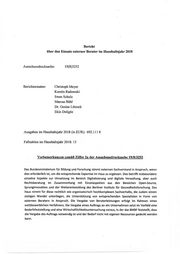 Einzelplan 30 / Ressort:BIVIBF Bericht über den Einsatz externer Berater im Haushaltsjahr 2018 Ausschussdrucksache: 19(8)3252 Berichterstatter: Christoph Meyer Kerstin Radomski Swen Schulz Marcus Bühl Dr. Gesine Lötzsch Ekin Deligöi Ausgaben im Haushaltsjahr 2018 (in EUR): 692.111 € Fallzahlen im Haushaltsjahr 2018: 13 Vorbemerkungen_gemäß Ziffer 2a der Ausschussdrucksache 19(8)3252 Das Bundesministerium für Bildung und Forschung nimmt externen Sachverstand in Anspruch, wenn dies erforderlich ist, um die entsprechende Expertise im Haus zu ergänzen. Dies betrifft insbesondere einzelne Aspekte zur Umsetzung im Bereich Digitalisierung und digitale Verwaltung, aber auch Rechtsberatung im Zusammenhang mit Einzelaspekten aus den Bereichen Open-Source, Sprunginnovation und der Weiterentwicklung des Berliner Instituts für Gesundheitsforschung. Das Haus nimmt für diese rechtlich wie organisatorisch hochkomplexen Sachverhalte, die zudem einem stetigen Wandel unterliegen, die Unterstützung von entsprechenden Spezialisten in Form von externen Beratern in Anspruch. Die Vergabe von Beraterleistungen erfolgt im Rahmen eines wettbewerblichen Verfahrens. Die Vergabe eines Auftrags an ein. Unternehmen setzt im Vorfeld eine Bedarfsfeststellung und eine Wirtschaftlichkeitsuntersuchung voraus, in der das BMBF feststellt, dass die Vergabe des Auftrags notwendig ist und der Bedarf nicht mit eigenen Ressourcen gedeckt werden kann.