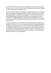 Die neue Definition erfasst zudem auch Beratungsleistungen, die von Inhouse -Gesellschaf- ten erbracht werden, so dass für den Geschäftsbereich BMVg die entsprechenden Leistungen der BwConsulting GmbH mit aufzuführen sind . Externe Beratungsleistungen sind für strategisch relevante Projekte des Ressorts vorgesehen. Bei der Vera nschlagung der benötigten Mittel im Einzelplan 14 (Kapitel 1413 Titel 531 01 - „Beratungsleistungen zur Optimierung der Bundeswehr“ und Titel 532 04 „Beratun gs- und Unterstützungsleistungen der BwConsulting GmbH“ ) wird berücksichtigt, dass der Ge- schäftsber eich des BMVg (GB BMVg) eine situationsgerechte Verfügbarkeit von externer Ex- pertise für praxisorientierte Handlungsempfehlungen angesichts bestehender Herausforde- rungen benötigt. Die Allgemeine Regelung „Inanspruchnahme von externen Beratungs - und Unterst ützungs- leistungen“ A-1670/2 (i.d.F. vom 15. Juni 2022) enthält insbesondere die Begriffsdefinitionen und gibt das einzuhaltende Verfahren für die Inanspruchnahme der jeweiligen Leistungen von Gesellschaften außerhalb des Ressorts sowie die daraus folgenden Berichtspflichten für den gesamten Geschäftsbereich des BMVg einheitlich vor. Diese Vorschrift wurde bereits in Bezug auf die fortentwickelte Definition der „Externen Beratungs - und Unterstützungsleis- tungen“ des HHA vom 9. Juni 2021 angepasst .