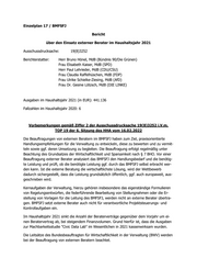 Einzelplan 17 / BMFSFJ Bericht über den Einsatz externer Berater im Haushaltsjahr 20 21 Ausschussdrucksache: 19(8)3252 Berichterstatter: Herr Bruno Hönel , MdB ( Bündnis 90/Die Grünen ) Frau Elisabeth Kaiser , MdB (SPD) Herr Paul Lehrieder , MdB ( CDU/CSU ) Frau Claudia Raffel hüschen , MdB ( FDP) Frau Ulrike Schielke -Ziesing , MdB ( AfD) Frau Dr. Gesine Lötzsch , MdB ( DIE LINKE ) Ausgaben im Haushaltsjahr 20 21 (in EUR): 441.136 Fallzahlen im Haushaltsjahr 20 20: 6 Vorbemerkungen gemäß Ziffer 2 der Ausschussdrucksache 19(8)3252 i.V.m. TOP 19 der 6. Sitzung des HHA vom 16.02.2022 Die Beauftragungen von externen Beratern im BMFSFJ haben zum Ziel, praxisorientierte Handlungsempfehlungen für die Verwaltung zu entwickeln, diese zu bewerten und zu vermit- teln sowie ggf. deren Umsetzung zu begleiten. Die Beauftragung erfolgt regelmäßig unter Beachtung des Grundsatzes der Wirtschaftlichkeit und Sparsamkeit nach § 7 BHO. Vor einer Beauftragung externer Berater analysiert das BMFSFJ den Handlungsbedarf u nd die benötig- te Leistung und prüft, ob die benötigte Leistung ggf. durch das BMFSFJ selbst erbracht wer- den kann. Ist die externe Beratung die wirtschaftlichste Lösung, wird der Wettbewerb dadurch sichergestellt, dass die Leistung grundsätzlich öffentlich, ggf. a uch europaweit, aus- geschrieben wird. Kernaufgaben der Verwaltung, hierzu gehören insbesondere das eigenständige Formulieren von Regelungsentwürfen, die federführende Bearbeitung von Stellungnahmen oder die Er- stellung von Vorlagen für die Leitung des BMFSFJ, werden nicht an externe Berater übertra- gen. BMFSFJ setzt externe Berater auch nicht für verantwortliche Projektsteuerungs - und Kontrollaufgaben ein. Im Haushaltsjahr 20 21 sinkt die Anzahl der Berate rverträge gegenüber dem Vorjahr um ei- nen Beraterv ertrag ab, bei steigendem Finanzvolumen. Grund hierfür ist, dass die Ausgaben zur Machbarkeitsstudie "Civic Data Lab" im Wesentlichen in 2021 kassenwirksam wurden. Die Leitsätze des Bundesbeauftragten für Wirtschaftlichkeit in der Verwaltung (BWV) werden bei der Beauftragung von externen Beratern beachtet.