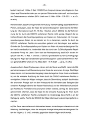 - 25 - besteht nach Art. 15 Abs. 3 Satz 1 DSGVO ein Anspruch darauf, eine Kopie von Aus- zügen aus Dokumenten oder gar von ganzen Dokumenten oder auch von Auszügen aus Datenbanken zu erhalten (BFH, Urteil vom 12. März 2024 – IX R 35/21 –, a.a.O., m.w.N.). Hierfür besteht jedoch keine generelle Vermutung. Vielmehr obliegt es der betroffenen Person, darzulegen, dass die Kopie der personenbezogenen Daten sowie die Mittei- lung der Informationen nach Art. 15 Abs. 1 Buchst. a bis h DSGVO für die Wahrneh- mung der ihr durch die DSGVO verliehenen Rechte nicht genügt. Begehrt die be- troffene Person die Zurverfügungstellung von Kopien von Dokumenten mit ihren per- sonenbezogenen Daten, ist es vielmehr an ihr zu benennen, welche ihr durch die DSGVO verliehenen Rechte sie auszuüben gedenkt und darzulegen, aus welchen Gründen die Zurverfügungstellung von Kopien von Akten mit personenbezogenen Da- ten hierfür unerlässlich ist. Andernfalls liefe das durch den EuGH aufgestellte Regel - Ausnahme -Prinzip ins Le ere. Denn nach der Rechtsprechung des EuGH ist der An- spruch nach Art. 15 Abs. 1 und Abs. 3 DSGVO grundsätzlich auf die Zurverfügungs- tellung einer Kopie der verarbeiteten personenbezogenen Daten der betroffenen Per- son gerichtet (BFH, Urteil vom 12. März 202 4 – IX R 35/21 –, a.a.O., m.w.N.). Ausgehend von diesen Erwägungen, denen sich der Senat anschließt, haben die Klä- ger keinen Anspruch auf Übersendung einer Kopie der anonymen Anzeige . Die Kläger haben bereits nicht substantiiert dargelegt, dass die begehrt e Kopie für sie unerlässlich ist, um die wirksame Ausübung der ihnen durch die DSGVO verliehenen Rechte zu ermöglichen. Sofern die Kläger vortragen, dass die Übermittlung l ediglich des Inhaltes der anony men Anzeige sich vor dem Hintergrund des Verhaltens des Beklagten (der unwahren Aussage während der Kassen -Nachschau) und der fehlenden schutzwürdi- gen Rechte und Freiheiten eines anonymen Dritten verbiete, vermag der Senat dahin gehend nicht erkennen, dass die Kopie für die wirksame Ausübung der ihnen durch die DSGVO verliehenen Rechte unerlässlich ist. Unabhängig davon fehlt es an der Darlegung, welche Rechte der DSGVO die Kläger überhaupt beabsichtigen geltend zu machen. cc) Der Senat kann daher auch dahinstehen lassen, ob der Anspruch bereits durch die Mitteilung des Beklagten, dass die anonyme Anzeige keine personenbezogenen Da- ten der Kläger zu 2. und 3. enthalte, gegenüber diesen Klägern erfüllt wurde.