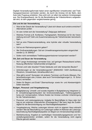 4 Digitale Veranstaltungsformate haben einen signifikanten Umweltvorteil, weil Treib - hausgasemissionen vermieden werden, die durch die Anreise mit der Bahn, dem Auto oder Flugzeug entstehen. Dies wirkt sich vor allem bei weiteren Anre isewegen aus. Der Energieaufwand, der für die Bereitstellung der Videokonferenz aufgewen - det wird, ist dem gegenüber vergleichsweise gering. Ziel und Art der Veranstaltung → Was ist der Zweck der Veranstaltung? Lässt sich dieser auch anders erreichen? Alternativen prüfen → An wen richtet sich die Veranstaltung? Zielgruppe definieren → Welches Format (z.B. Konferenz, Fachgespräch, Workshop) ist für die Veran - staltung sinnvoll? Zahl und Zusammensetzung der Teilnehmenden berücksich - tigen → Soll es eine Präsenzveranstaltung, eine hybride oder virtuelle Veranstaltung sein? → Soll es ein Rahmenprogramm geben? → Bei Großveranstaltungen: Soll ein Umweltmanagementsystem eingerichtet werden (z. B. EMAS)? → Sollen nicht vermeidbare Treibhausgasemissionen kompe nsiert werden? Ort, Zeit und Dauer der Veranstaltung → Wo? Lange Anreisewege vermeiden bzw. auf geringen Reiseaufwand achten, Nutzung öffentlicher Verkehrsmittel ermöglichen → Drinnen und/ oder draußen? Feste Gebäude und/ oder temporäre Bauten? → Anforderungen an die Veranstaltungsorte? (EMAS/ISO 14001 -Zertifizierung, Ökostrom, Umweltcheck, klimafreundlich etc.) → Was gibt’s sonst? Synergien mit anderen Terminen und Events (Messen, Par - lamentssitzungen usw.) nutzen, aber auch Terminüberlagerungen ( z. B. Schul - ferien) vermeiden → Zeiten für Beginn und Ende? Übernachtungs - sowie An - und Abreisemöglich - keiten beachten Budget -, Personal - und Vergabeplanung → Budgetplanung: Umwelt - und soziale Aspekte in Budgetplanung integrieren (z. B. Umweltmanagement system bei Großveranstaltungen, Treibhausgaserhe - bung und -kompensation; höhere Kosten bei Anreise und/oder Unterbringung für die Teilnehmenden) → Personal - und Leistungsplanung: Aufgabe für Beschäftigte im Haus oder Auf - trag an ein externes Unternehmen (Ev entagentur)? Bei wem liegt die Zustän - digkeit für die Berücksichtigung von Nachhaltigkeitsaspekten? → Vergabeplanung: Welche Leistungen können nicht im eigenen Haus erbracht werden? Bei der Beschaffung von Leistungen sollten im Rahmen der Leistungs - beschrei bung Nachhaltigkeitsaspekte von Beginn an mit berücksichtigt werden. → Markterkundung: Angebot an nachhaltigen Veranstaltungsagenturen und Ver - anstaltungsstandorten ermitteln, sofern für die Veranstaltung nicht eigene Räume genutzt werden